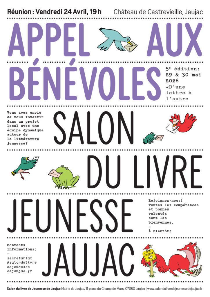 L’édition 2026 du Salon du Livre Jeunesse se déroulera les 28, 29 et 30 mai à Jaujac (Ardèche).